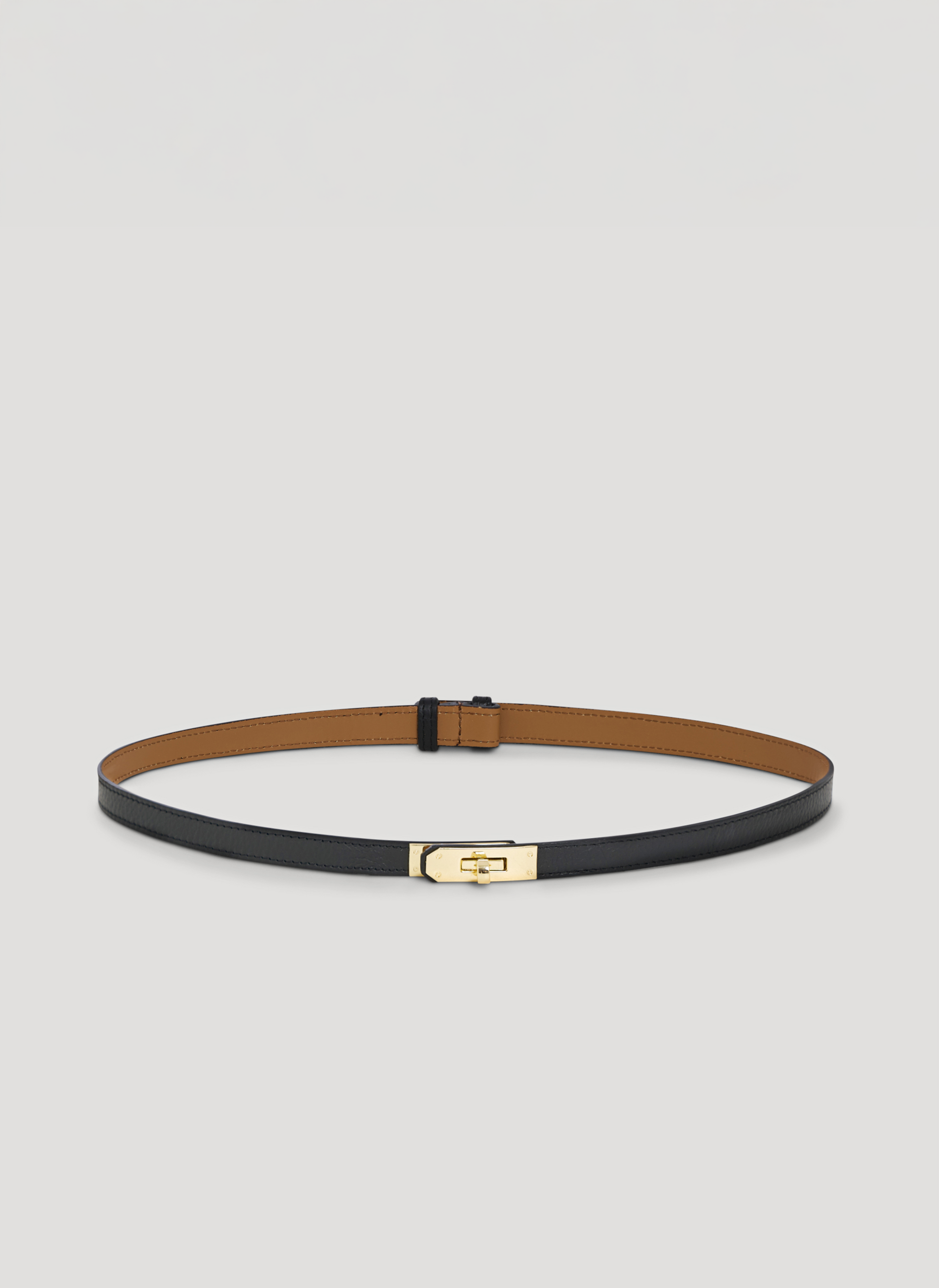 Cinturón Baronne de piel de becerro con elegante cierre chapado en oro.